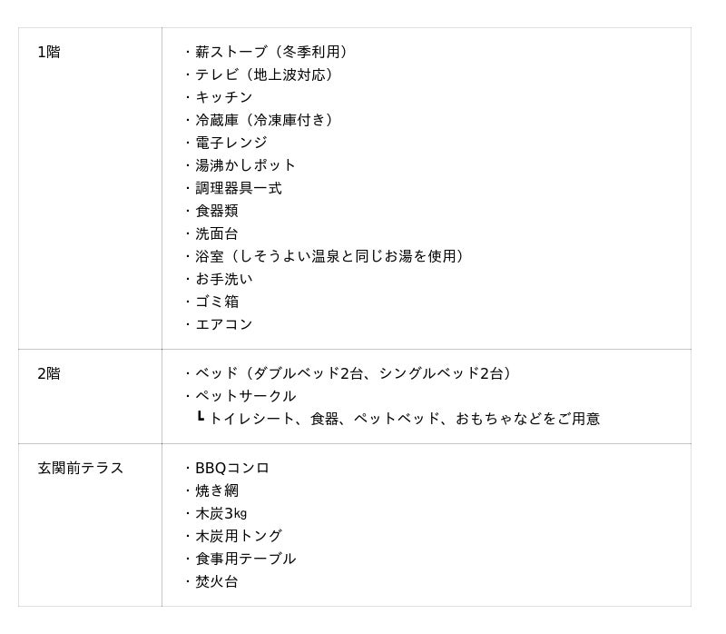 ご家族やご友人、そして大切なわんちゃんとの滞在にもご利用いただけるよう、設備や備品を充実させております。