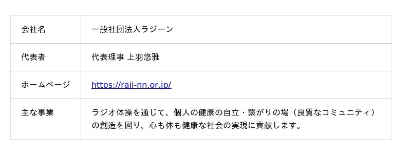 ※TANOTECH株式会社は、一般社団法人ラジーンと、次世代ラジオ体操の普及に向けた覚書を締結しております。 プレスリリースはこちら