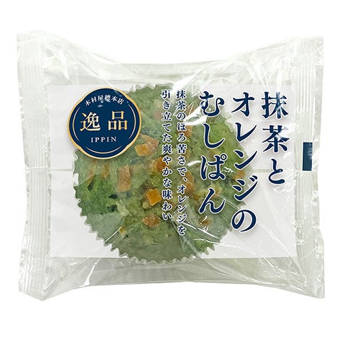 抹茶風味のむしぱん生地に、オレンジピールをトッピングして蒸し上げました。