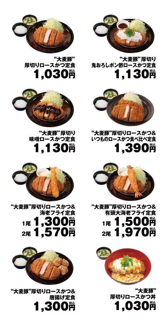 食」「大麦豚厚切り味噌ロースかつ定食」「大麦豚厚切りロースかつ丼」にご利用いただけま