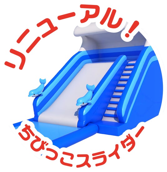 新登場!高さ5mのちびっこスライダー!かわいい2匹のイルカがトレードマークのスライダー。親子で一緒にすべることができるワイドタイプにリニューアルして新登場しました。だから小さなお子様でも安心してお楽しみいただけます。BIGスライダーは「まだちょっと怖いかも」というキッズにぴったりのスライダーです。