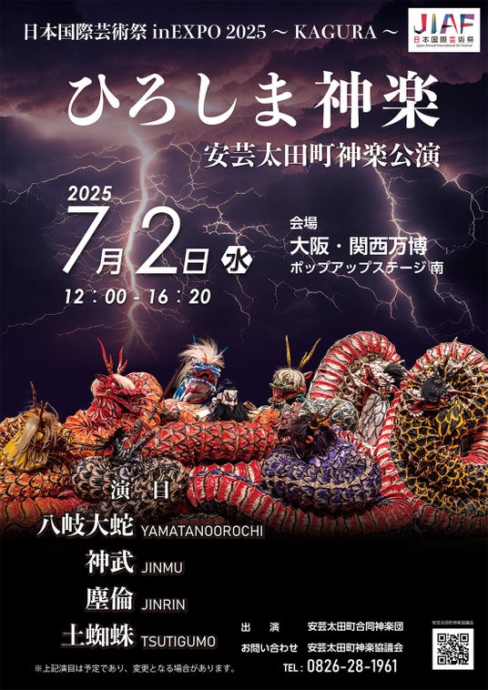 < 日 程 > 2025年7月2日(水)12:00~16:20< 出 演 > 安芸太田町 松原神楽団、本郷神楽団、川北神楽団ほか