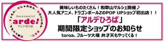 美味しいものたくさん!和歌山マルシェ開催♪大人気アニメ、ドラゴンボールZのPOP UPショップ初出店!!toroa、フルーツ大福 弁才天もやってくる!