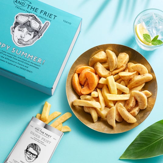 3.夏季限定のパッケージが登場。今だけの限定ギフトボックスです。BALSAMIC AND PEPPERを含めた6種類のドライフリットを詰め合わせたボックスは、1箱で食べ比べを楽しむことができます。