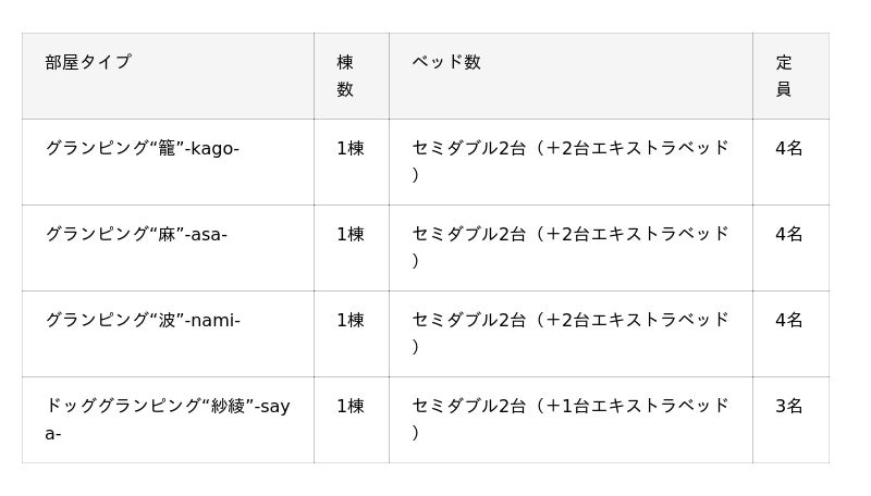 ぜひ、家族やカップルでNAGOMI CAMPでの思い出にご利用ください。