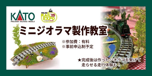 鉄道模型の最大手、KATO様が全面協力! 鉄道模型を彩る小さな風景を貴方の手で再現してみませんか? 完成後は作ったジオラマを繋げて走らせる走行体験もできます。参加は店舗での事前申込制で、締切は6月27日(金)。一部の時間帯は既に申込受付を終了しておりますので、最新の状況は店舗にご確認ください。空きがある場合のみ、当日のご参加も受付いたします。