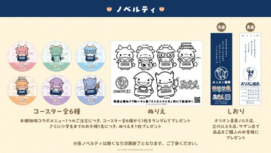 カフェメニューをご注文のお客様には「コースター(全6種)」や親子で楽しめる「ぬりえ」をプレゼント!
