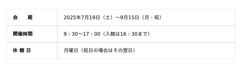 開 催 時 間: 9:30~17:00(入館は16:30まで)