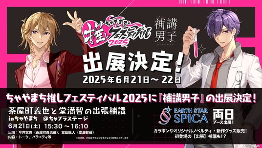株式会社アース・スター エンターテイメント(本社:東京都品川区)は、2025年6月21日(土)開催の「ちゃやまち推しフェスティバル」にて、メディアミックス"着席"プロジェクト「補講男子」のステージ『茶屋町義也と堂満智の出張補講 in ちゃやまち』を開催しました。