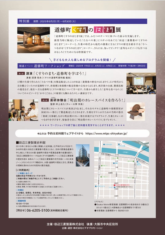 問合せ先:田辺三菱製薬史料館 06-6205-5100(来館に関するお問合せ)