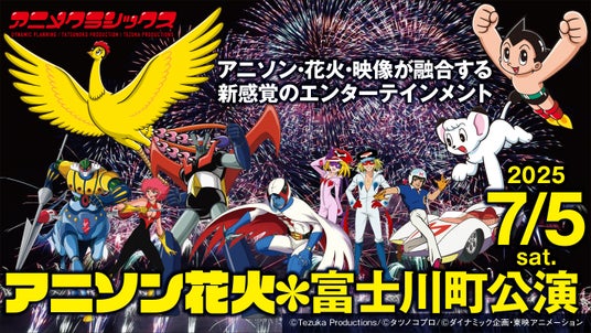 アニメクラシックス花火 富士川町公演実行委員会(本部:山梨県南巨摩郡富士川町天神中條1134 代表者:実行員会会長 望月利樹)は、日本が誇る名作【レジェンドアニメ】と、日本の伝統文化である「花火」を融合させた、かつてないエンターテインメントライブ『アニメクラシックス アニソン花火』シリーズの山梨・富士川町公演を、2025年7月5日(土)に開催することをお知らせいたします。本イベントは、大手制作会社の協力を得て、1970年代~90年代の名作アニメ作品の映像と主題歌・エンディング曲に、花火を融合させ楽しんでいただく革新的な体験型イベントのシリーズ公演の第一弾公演となります。