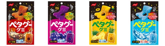 「ペタグー」シリーズは、2019年10月の「コーラ味」の発売以降、"薄くてかた~い食感"のクセにな る噛みごこちと、ユニークな見た目で、競争が激化するグミ市場において一定の存在感を築いており、現在 までで累計販売数1億個(※ )を突破している大人気シリーズです。