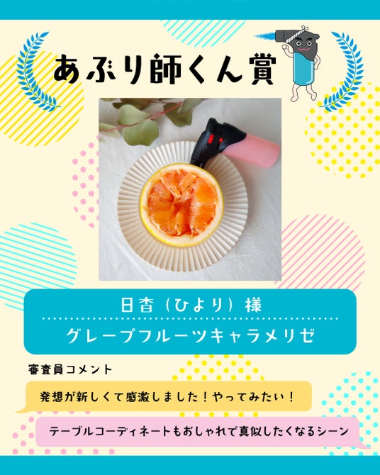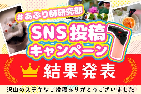 本キャンペーンでは、定番の炙り寿司やクレームブリュレ、驚きのアイディアまで、皆様の自由な発想による「炙りグルメ」や「暮らしを豊かにする炙り活用術」を募集しました。多数のご応募の中から、アイデアのユニークさ、写真・動画の魅力などを基準に、栄えある受賞作品を決定いたしました。