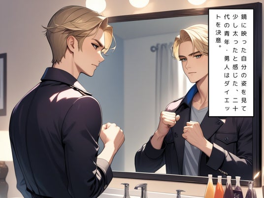 あらすじ:鏡に映った自分の姿を見て少し太ったと感じた青年・勇人はダイエットを決意。ジムを予約し、サラダを作るための大量の野菜も購入し、準備万端だった勇人の元に1件の思わぬメッセージが届く──。