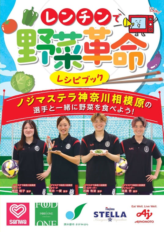 そこで、今回の「レンチンで野菜革命レシピブック」では、電子レンジを活用し、簡単に作れる野菜料理を掲載しています。本冊子には実際にレシピブックに載っている料理を実食した「ノジマステラ神奈川相模原」の選手も登場。どのメニューも火を使わずにできるので、手軽に野菜を足したいという方はぜひお試しください!