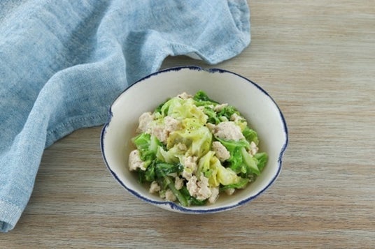 鶏ひき肉とキャベツのガリバタレンジ煮