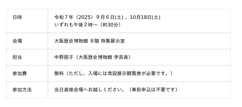 取材をご希望の場合は、事前に下記担当までご連絡ください。(連絡先)大阪歴史博物館 企画広報課 企画広報係