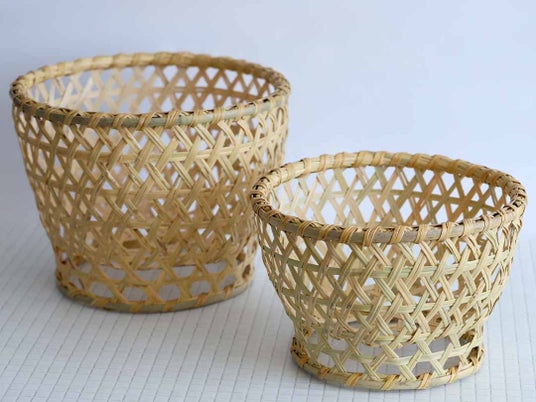 120年に一度の開花で枯れた希少なスズ竹細工「スズ竹茶椀籠/野菜籠」完成