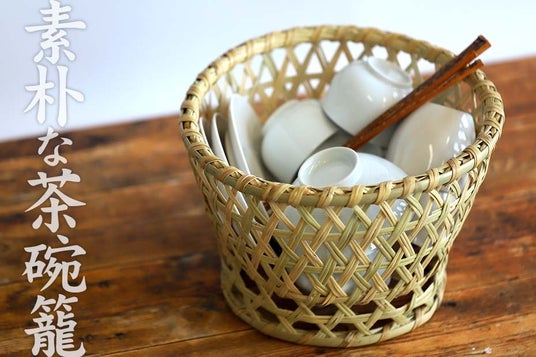 「スズ竹茶碗籠」は、水切り用の籠として古くから日本の台所で重宝されてきた伝統の一品。洗った茶碗や器を自然に乾かすのに適しており、底の編み込み部分の水はけも良好です。