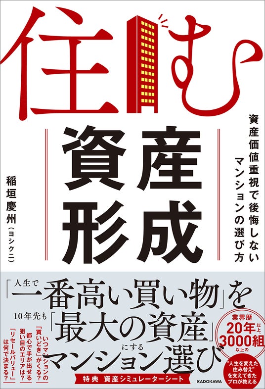 株式会社KADOKAWA(本社:東京都千代田区、取締役 代表執行役社長 CEO:夏野剛)は、2025年6月18日(水)に「住みやすさ」も「リセールバリュー」も意識したマンションの見つけ方・買い方を教える『住む資産形成 資産価値重視で後悔しないマンションの選び方』<著:稲垣慶州(ヨシクニ)>を刊行しました。また、同書は大垣書店麻布台ヒルズ店ビジネス書部門の週間ランキング第1位を獲得いたしました。