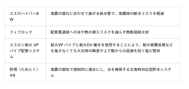 ハイムスイート高崎 ザ・レジデンスでは、災害に強い積水化学グループのインフラ技術を幅広く採用し、万が一の時に家族と住まいを守るだけでなく、災害後も早く元の生活に戻れるようレジリエンス性を高めることで、安心・安全な暮らしの実現を目指しています。