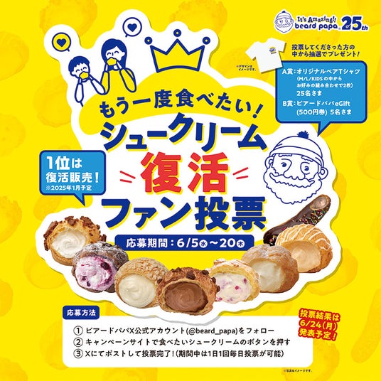 ■ビアードパパ25周年記念【シュークリーム復活ファン投票】について