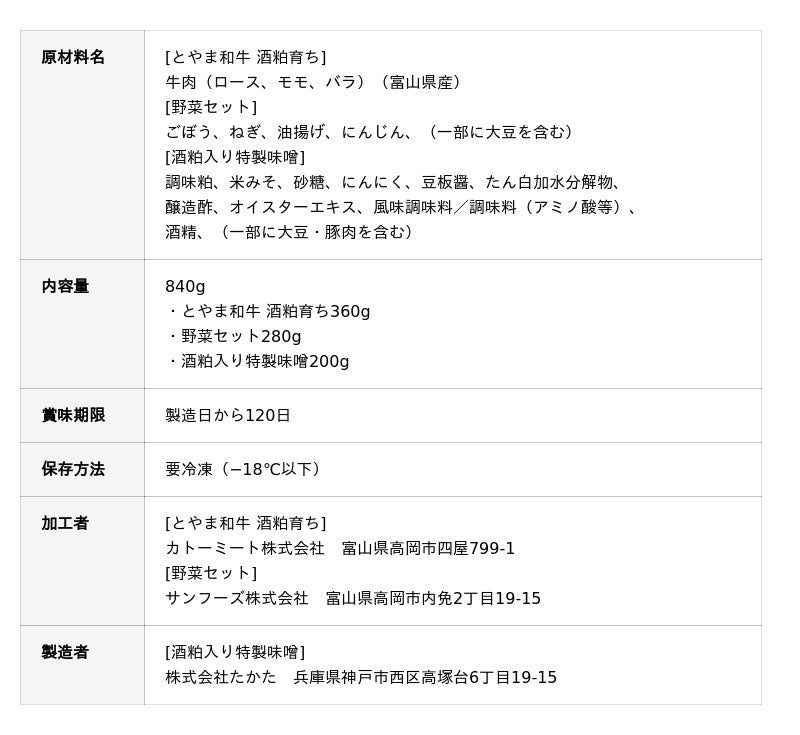 さらに富山の和牛に合わせて、内容量の約半分に酒粕を使用した「特製味噌」はすべての具材を豊かな味わいに引き立てるだけでなく、身体を内側から元気にしてくれます。