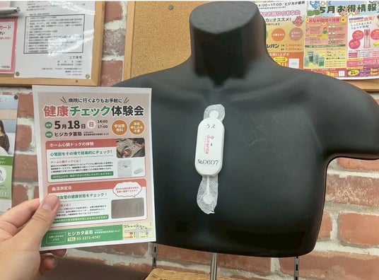 過去に開催した2回の体験型イベントでは、多くの地域住民が来場し、心電図と血流測定の簡易検査を実施しました。「ホーム心臓ドック(R)」は、小型心電計を胸部に装着し、自宅で9時間以上の心電図データを取得する医療テックサービスで、不整脈などの心疾患リスクに加え、睡眠の質や無呼吸、ストレス指標も同時に可視化。検査から医師のフォローまで自宅で完結するのが特徴で、外出困難な高齢者や仕事に忙しい現役世代でも手軽に利用できます。