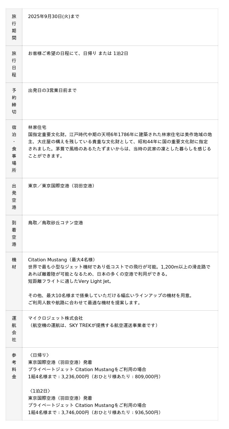 プライベートジェットで東京国際空港(羽田空港)から鳥取砂丘コナン空港へ。
