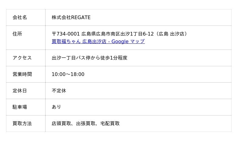 なお、店頭買取は完全予約制なので、来店前には必ずコンタクトを取っておきましょう。店舗には無料駐車場(1台)も完備しています。