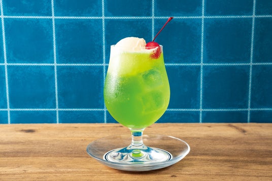 懐かしいさくらんぼをトッピングしたクリームソーダ。バニラアイスを溶かしてクリーミーな味わいをお楽しみください。