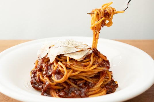 ひき肉と香味野菜をじっくりと煮込んだボロネーゼスパゲッティ。