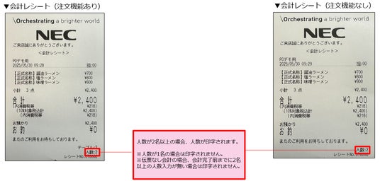 会計レシートに人数が印字されるようになりました。