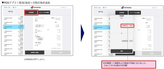 元取引指定返品において、これまでは30日間まで遡って検索、返品できていたところ、90日間まで遡れるようになりました。