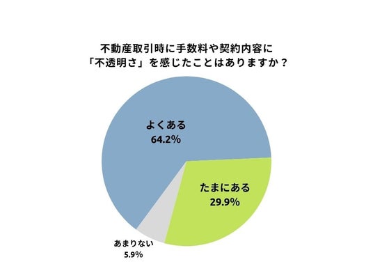 不動産取引時に手数料や契約内容に「不透明さ」を感じている人が9割以上。初めての取引では判断が難しく、人生で何度もない大きな取引だからこそ、「これで本当に正しいのか?」という疑問がつきまとうことが明らかに。