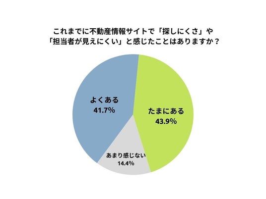 「物件が探しにくい」「担当者の情報が少ない」-8割以上が従来の不動産情報サイトに不満を感じている。連絡を取るまでに時間と手間に対するフラストレーションが浮き彫りに。