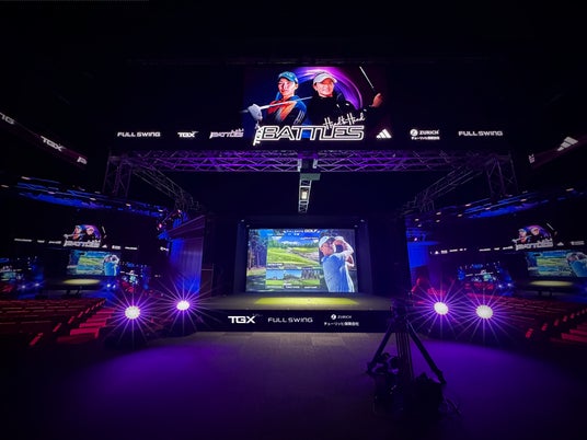 「TGXシリーズ」は、6地域代表によるチーム対抗戦。PGAツアーも採用するゴルフシミュレーション技術「FULL SWING」をフル活用し、精密なデータとライブ映像を通じてインドアながら"リアル以上の臨場感"を実現。舞台は、音楽と声援が響くスタジアム型会場。
