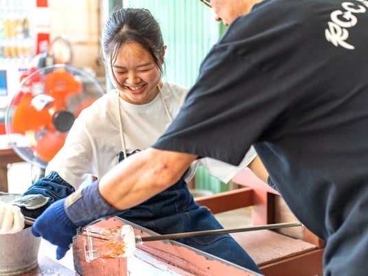 沖縄の美しい自然を思わせる鮮やかな色合いや、1つ1つ手作りで作られる丸いフォルムが特徴の琉球ガラス。手作り体験の様子や製品の魅力を発信して認知度向上を目指す他、新商品開発に向けた意見交換も。