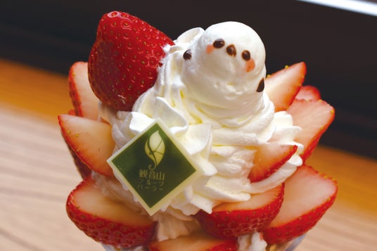 新千歳空港から好アクセスの第一滝本館。登別温泉で、シマエナガがかわいく彩る「夏いちご農園パフェ」など、旬のフルーツパフェを旅のご褒美に味わえます。