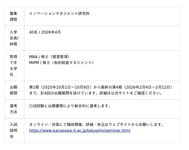 KIT虎ノ門大学院が社会人学生を募集、2026年4月入学向けの出願期間を公開
