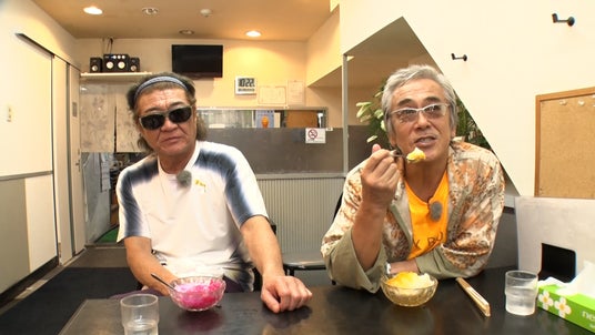 「こふじ食堂のかき氷」岸和田の夏を代表する絶品かき氷で、2人も大盛り上がり。