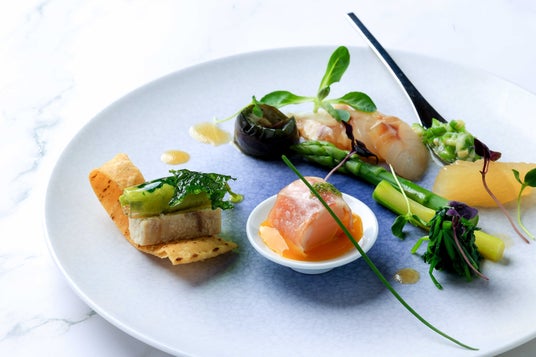 本プランのお食事は、フレンチ懐石またはビュッフェの2種類からお選びいただけます。4月より開始したフレンチ懐石は、"お箸で食べられる和フレンチ"として、和食と北海道の食文化を融合させた贅沢なコース料理です。また、多彩な料理のエンターテインメント演出により、写真や動画に収めたくなる驚きとワクワクをお届けいたします。