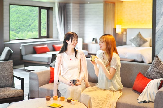 水をテーマにした16階客室では豊平川の流れを、木々をテーマにした15階客室では四季折々の彩りをお楽しみいただけます。定山渓の美景を堪能する、贅沢な客室でのひとときぜひご体感ください。
