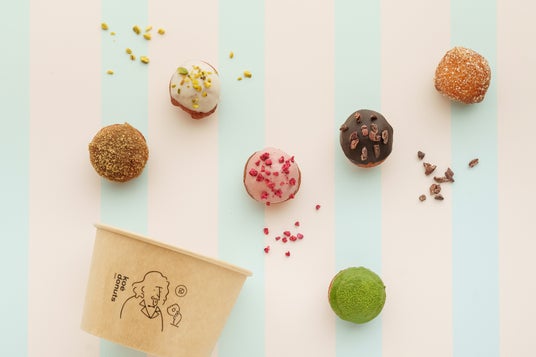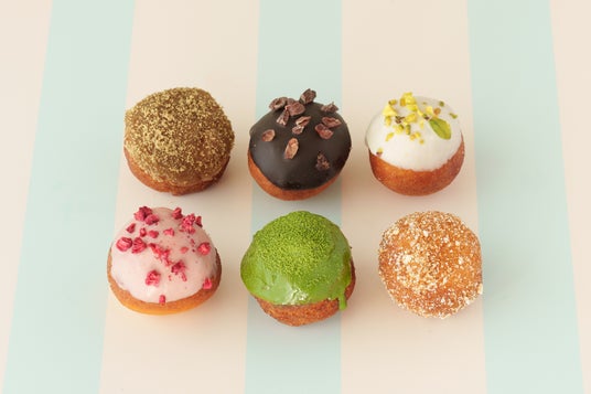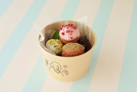 また同日より、6種のフレーバーが一口サイズで一度に楽しめる『ドーナツボール』も登場。もちもち生地とオールドファッション生地を使用し、フレーバーには「黒糖」、「チョコレート」、「ホワイトチョコピスタチオ」、「ストロベリー」、「宇治抹茶」、「ココナッツシュガー」をラインアップしました。カップ付きでテイクアウトにもおすすめです。