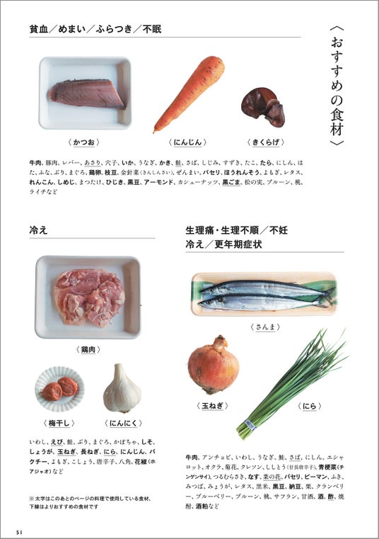 「からだの不調別」に、おすすめの食材についての詳しい解説つき。
