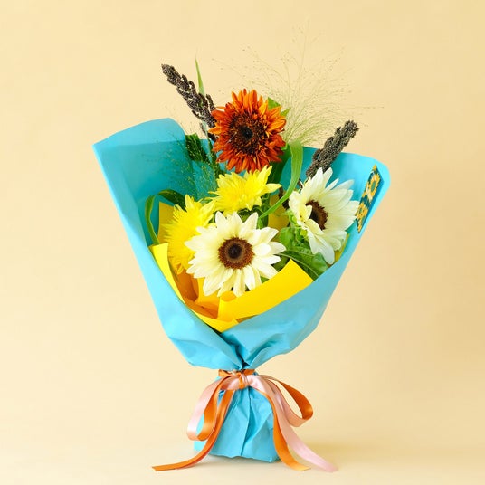 ショップおすすめのヒマワリをシンプルなブーケに仕上げました。コンパクトなサイズでちょっとしたギフトやご自宅用にもおすすめです。