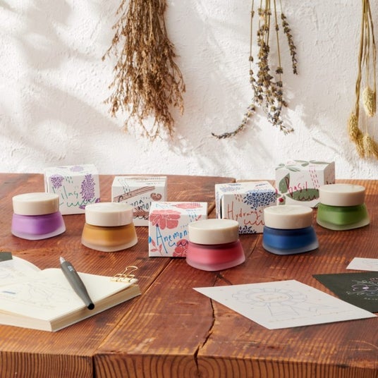 アイシーからは、アナログで書く/描く全ての人々に『コト』と『モノ』を提案する新シリーズ『てがき時間』のインクや、今年発売したペーパーアイテム「ペコリスカスタード」を販売します。