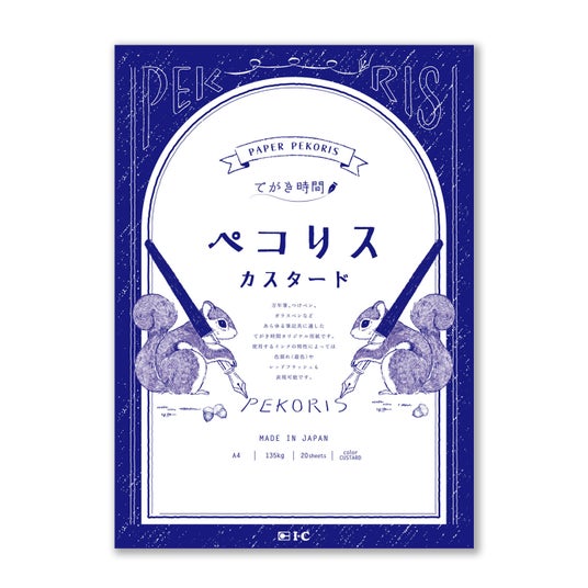 ペコリスカスタードはつけペンや万年筆、ガラスペンと相性の良い滑らかな書き味を実現したインク専用紙で、使用するインクの特性(※)によって「色割れ」や「レッドフラッシュ」と呼ばれる色変化が表現可能となっており、インクの再現性をよりお楽しみいただけます。