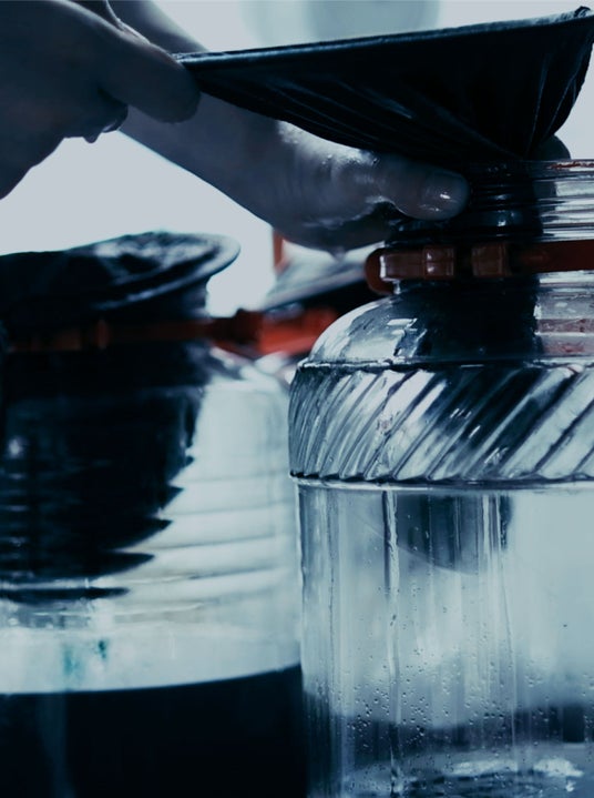 ナチュラルコスモが得意とするのがハーブチンキ製造。チンキとは植物や動物などの有効成分を高濃度のアルコール(またはアルコールと水の混合液)に浸して抽出した液体製剤。17年以上の経験に基づく独自の技術にて、植物だけではなくAFAブルーグリーンアルジーというバクテリアからも抽出し、シャンプーなどのコスメに使用しています。