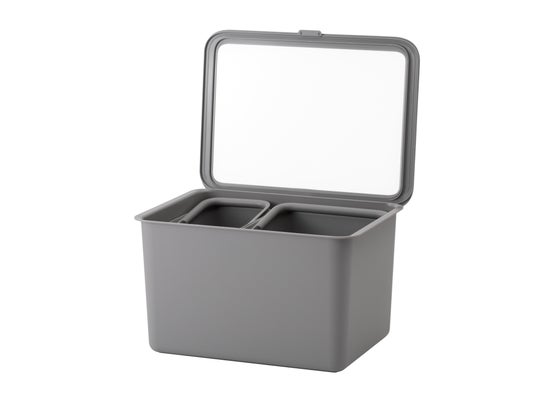 アウターケースとストックケースで米びつ内を仕切られるため、炊飯時に白米と一緒に使うものを、取り出しやすくひとまとめにできます。